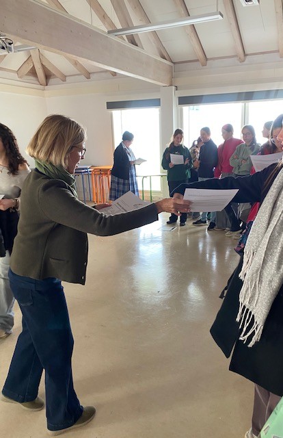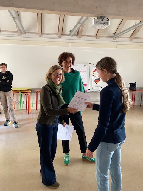 Mme Ibold a chaleureusement félicité les élèves pour leur engagement et leur réussite, espérant que ce premier diplôme soit une source de motivation pour poursuivre l’apprentissage de l’allemand. Elle a également encouragé nos jeunes germanistes à viser plus haut, en se préparant dès maintenant à l’épreuve du DSD 2, qui se déroule en terminale.