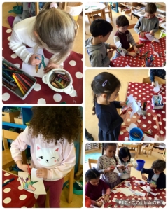 - Une fois les décorations terminées, les enfants ont découpé leurs oiseaux, avec l’aide des plus habiles pour accompagner les autres.
